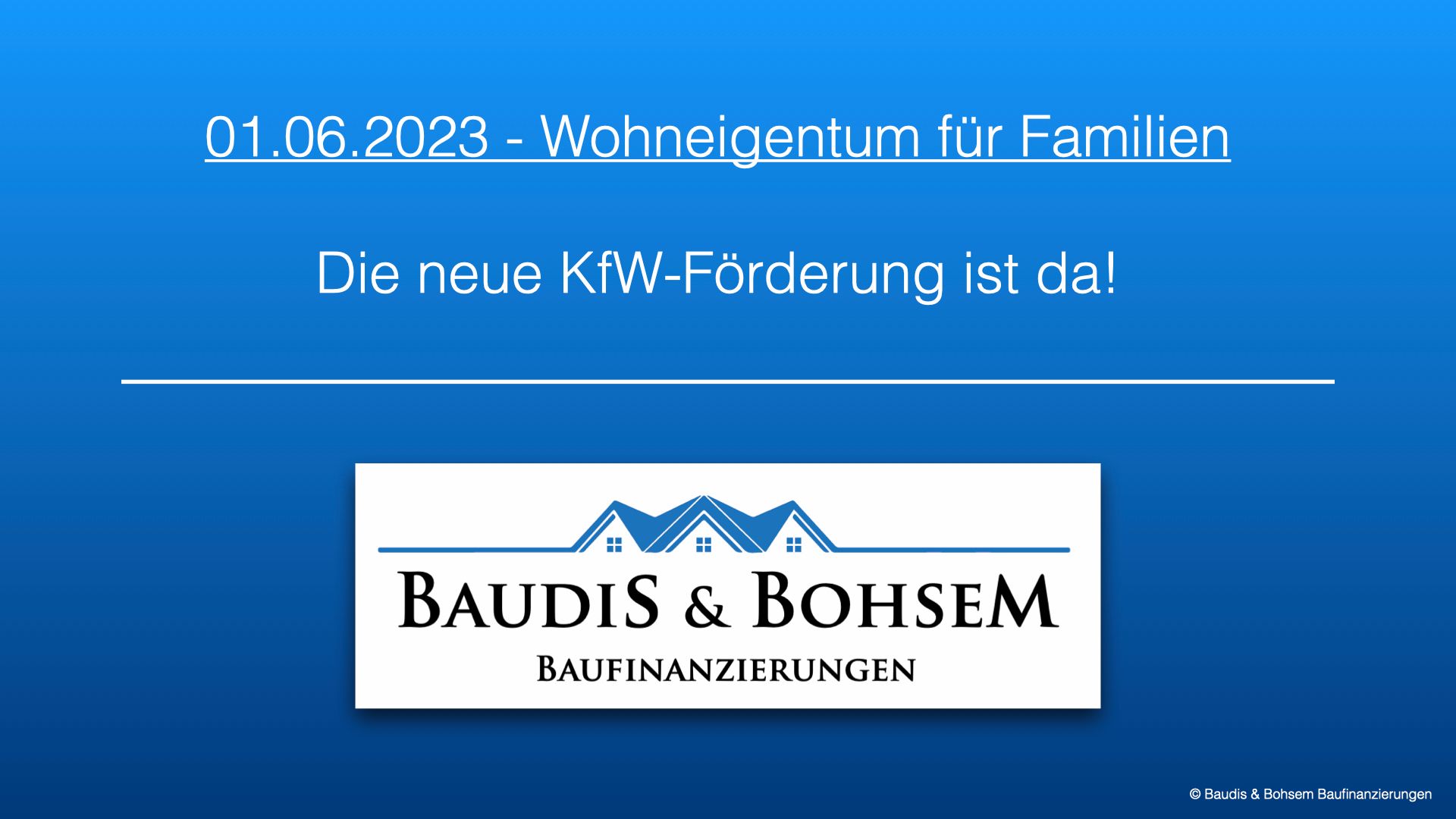 Zum 01.06.2023 hat die Kreditanstalt für Wiederaufbau (KfW) die Förderung zum Erwerb von Wohneigentum noch einmal deutlich erweitert. Hier kurz die wichtigsten Informationen: gefördert werden klimafreundliche Häuser oder Eigentumswohnungen, die neu gebaut oder erstmalig gekauft werden die Fördersumme (zinsgünstiges Darlehen) reicht von 140.000 Euro bis 240.000 Euro gefördert werden Familien mit Kindern (auch Alleinerziehende) die Förderung ist abhängig vom Einkommen die Zinskonditionen liegen zwischen 0,01 % effektiv bis 1,16 % effektiv Details zur Förderung und was man beachten muss erfahren Sie bei uns - lassen Sie sich beraten! Kontakt hier